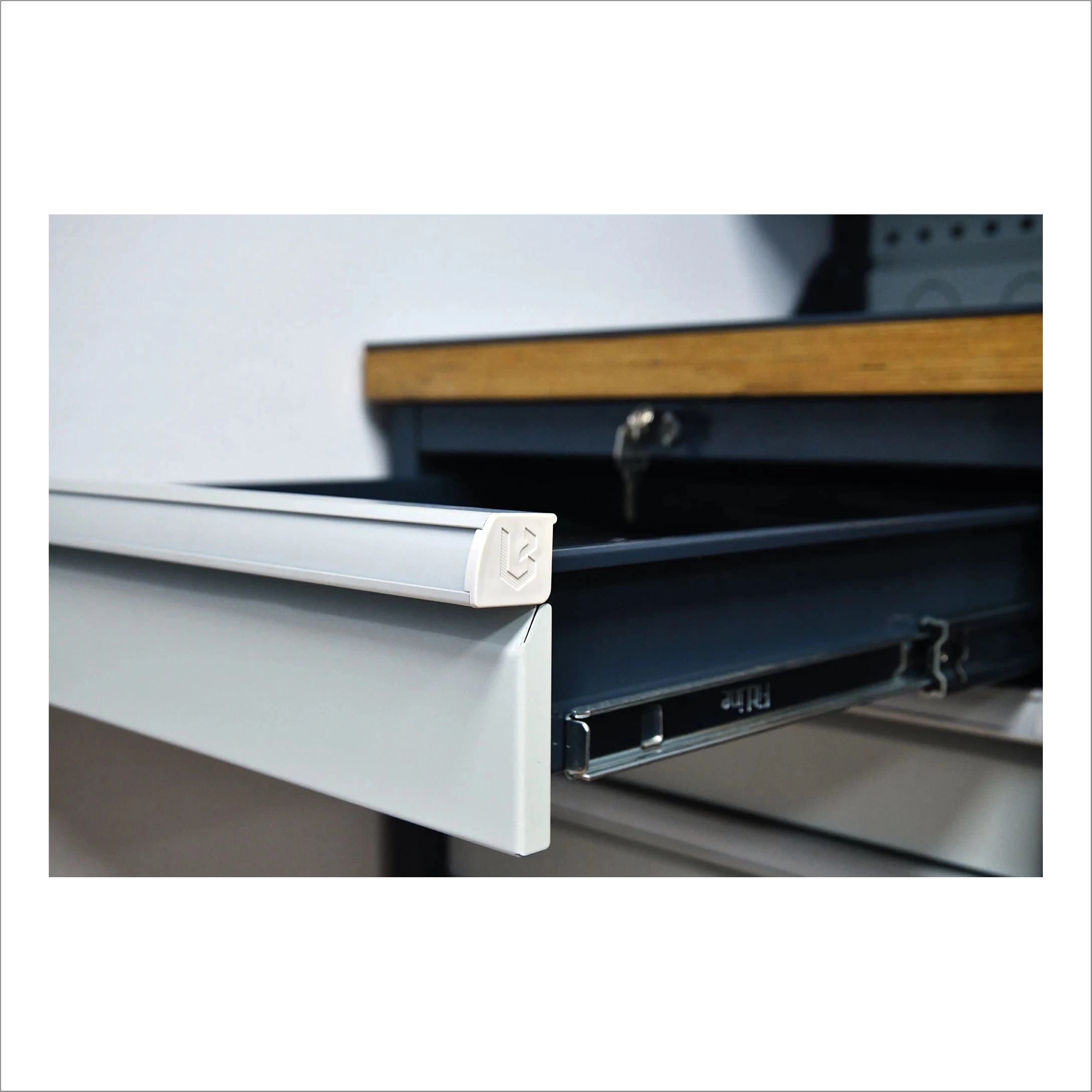 Тумбы с ящиками оборудованы усиленными шариковыми направляющими, которые обеспечивают плавное выдвижение для каждого отделения и гарантируют повышенную грузоподъёмность. Все ящики оснащены удобными ручками, на которых предусмотрено место для маркировки. Внутренние размеры малых ящиков — 80x460x500, больших — 190x460x500. Максимальная распределенная нагрузка на каждое отделение — 100 кг. Тумбы комплектуются центральным ключевым замком и защищены от опрокидывания специальной системой, которая ограничивает полное выдвижение всех ящиков одновременно.