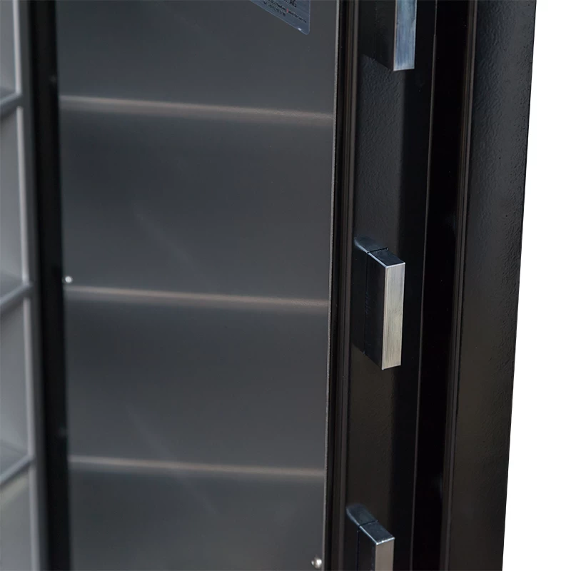 Сейф Waldis ECO 1200 E Black запирается швейцарским электронным замком повышенной секретности. Конструкция замка предусматривает защиту от подбора кода. Дверь сейфа подвешена на скрытых петлях и допускает угол раскрытия на 180°.